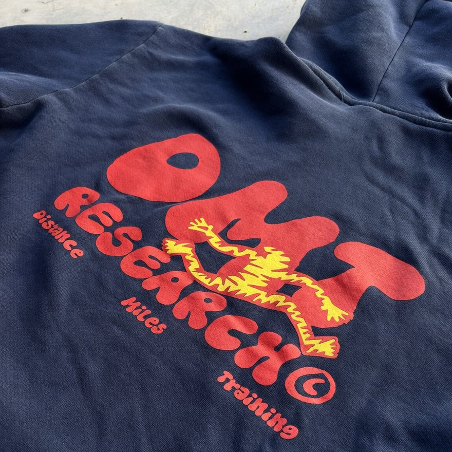- DEEP NAVY PIGMENT DYED FLEECE, DOUBLE STONE WASH — BROKEN IN BY MILES, NEVER SOFT.